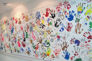 (1)现场设立个性喷绘涂鸦墙,参赛选手用手掌进行彩色手掌涂鸦,五彩的掌纹让此次活动充满色彩,增添活动氛围。