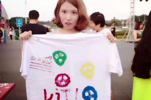 (2)领完T恤后,用颜料描绘属于自己的独家STYLE T恤,在接下来的奔跑中,形成靓丽的风景线。