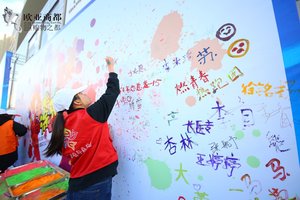 (1)现场设立个性喷绘涂鸦墙,参赛选手用手掌进行彩色手掌涂鸦,五彩的掌纹让此次活动充满色彩,增添活动氛围。