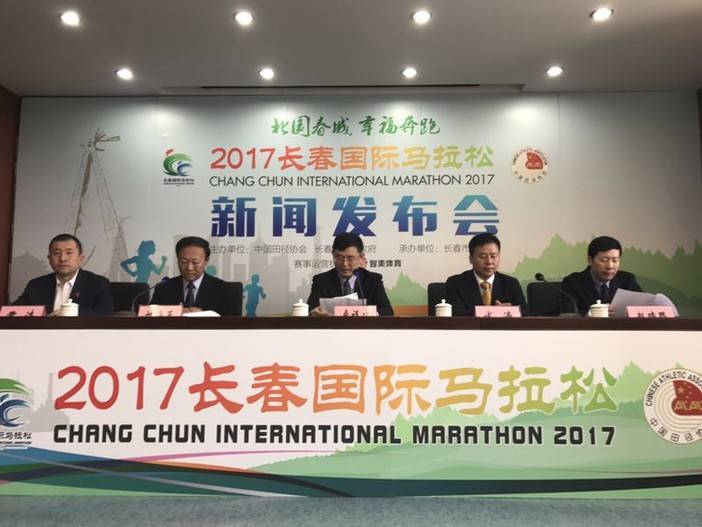 3月23日上午,2017长春国际马拉松新闻发布会在长春市体育局举行。中国田径协会副秘书长、国家体育总局田径运动管理中心马拉松办公室主任水涛、长春市人民政府副秘书长卢福建、长春市体育局局长刘海玉、副局长赵晓路、智美体育集团北方公司副总经理尹浩出席发布会,通报了长春国际马拉松比赛的筹备情况,公布了开赛时间、报名时间、赛事规模等相关信息。