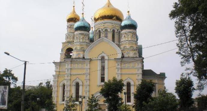 海参崴分布有大约40座大大小小的俄国东正教堂,这其中最大最宏伟的一座无疑是至圣圣母天主大教堂了。这座教堂始建于1902年,所在地曾经是个城镇墓地,数代海参崴居民曾长眠于此。当苏维埃政权建立后的1935年,教堂被拆毁,公墓被关闭,这里被改造成为一个城市文化娱乐公园。那些垮掉的砖块曾用来建造新的师范学院,即未来的远东国立大学。苏联解体后,教会曾试图通过信徒募捐来筹集到重建教堂的资金,但直到2004年9月教堂才得以开始重建。典型俄罗斯风格,冰淇淋球圆顶,黄色的教堂外墙流露出庄严和精致。穹顶有不同颜色的,看上去犹如童话中的建筑。