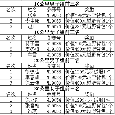 (2)外地10公里组与30公里组前三名奖品俱乐部包邮,其它一律邮费自理;