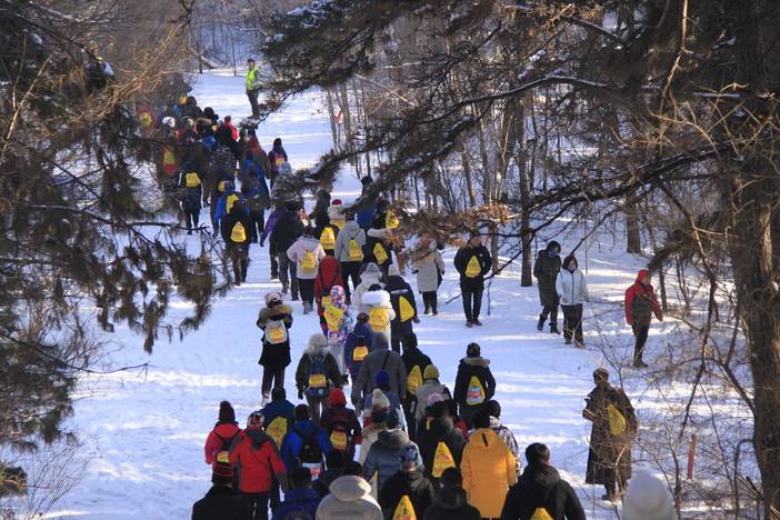 2020中国长春雪地徒步穿越赛净月潭鸣枪开赛!参赛选手