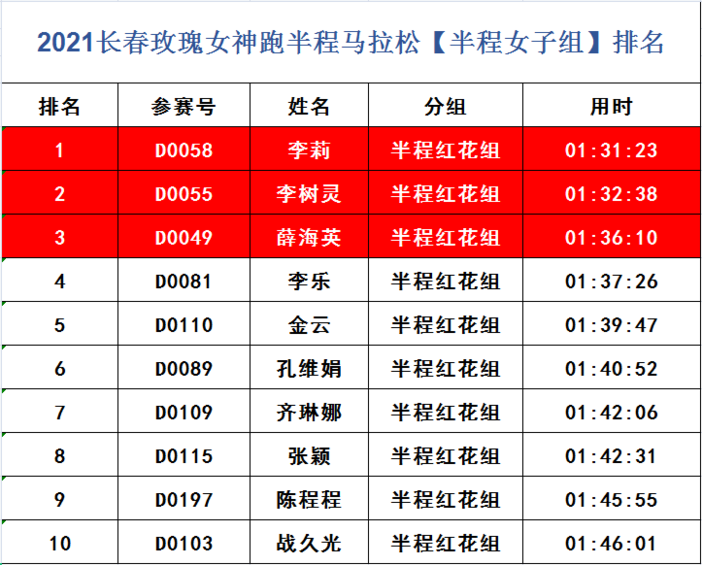 至此,2021长春玫瑰女神跑女子半程马拉松圆满结束!