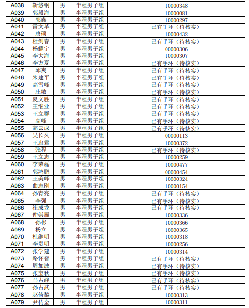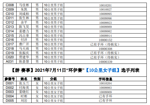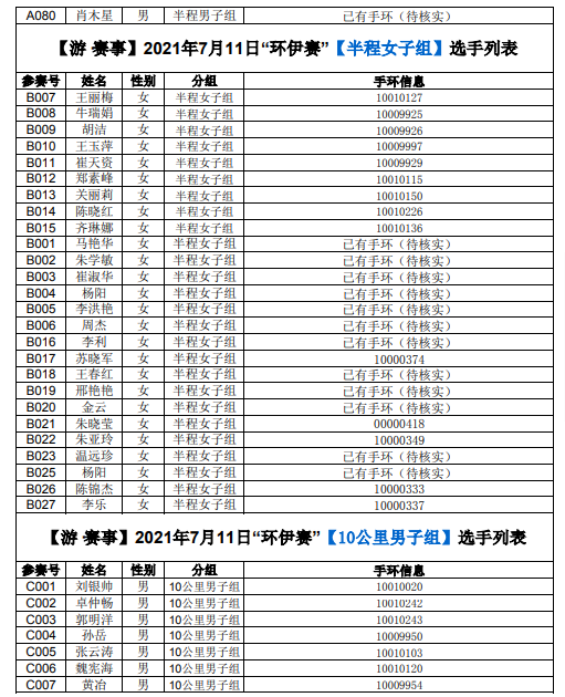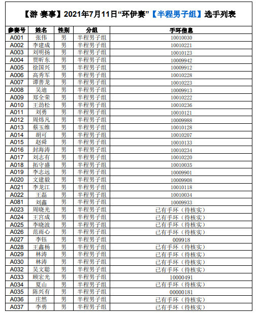 个人参赛号及手环编号(指卡号)请浏览以下信息;如果有出入请与组委会联系:0431-88982601