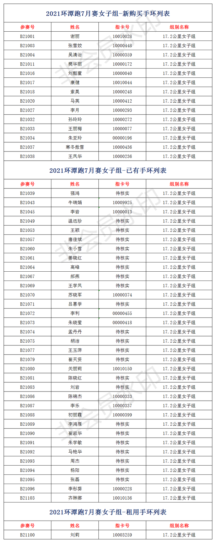 个人参赛号及手环编号(指卡号)请浏览以下信息;如果有出入请与组委会联系:0431-88982601