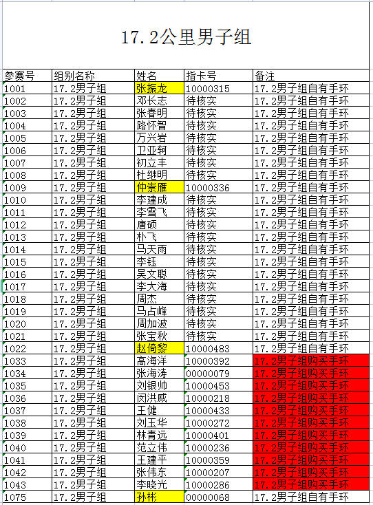 个人参赛号及手环编号(指卡号)请浏览以下信息;如果有出入请与组委会联系:0431-88982601