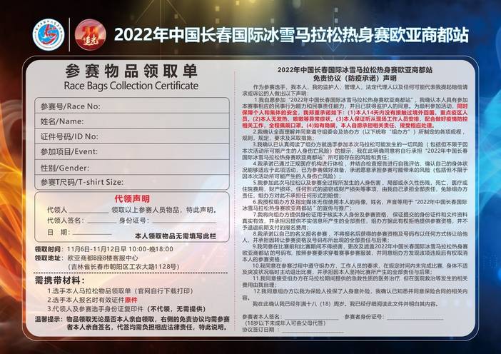 需要特别注意:物料领取单的右侧为免责协议,请自行签署好自己的名字及身份证号码与签署日期(日期为活动当天的日期),未满18岁儿童需要将名字和监护人(父母)签署在一起即可;