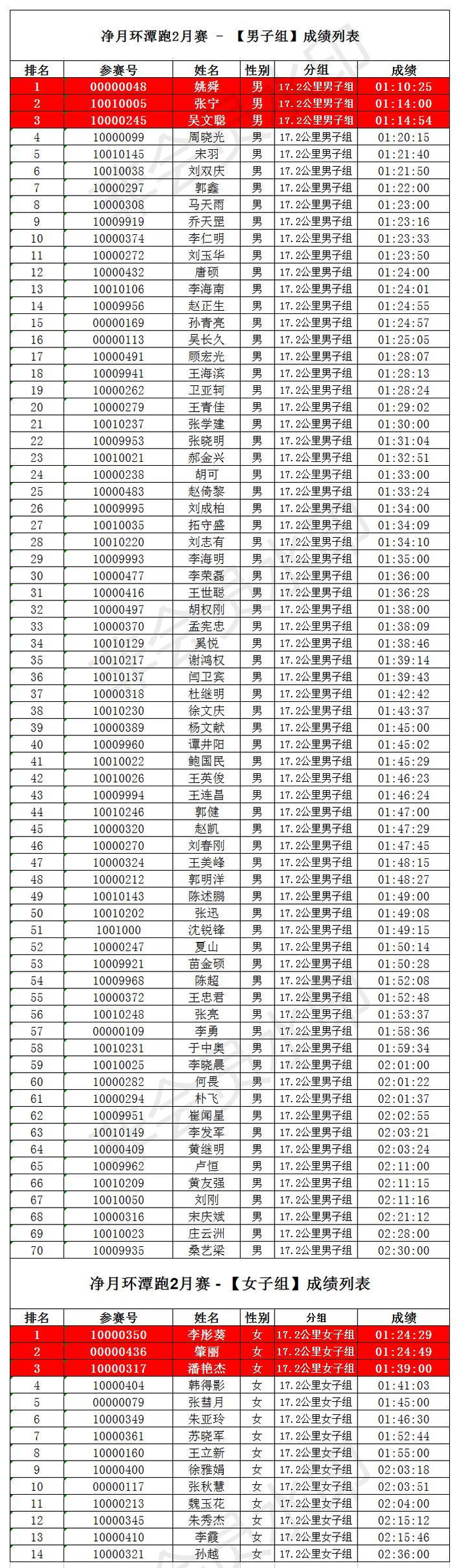 2.男子组前十名及女子组前十名每人获得影票1张,已于现场发放完毕!