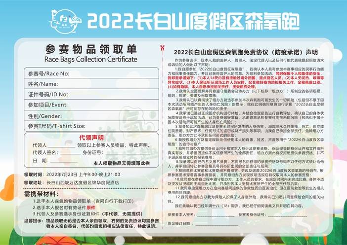 需要特别注意:领取单的右侧为免责协议,请自行签署好自己的名字及身份证号码与签署日期(日期为活动当天的日期),未满18岁儿童需要将名字和监护人(父母)签署在一起即可;
