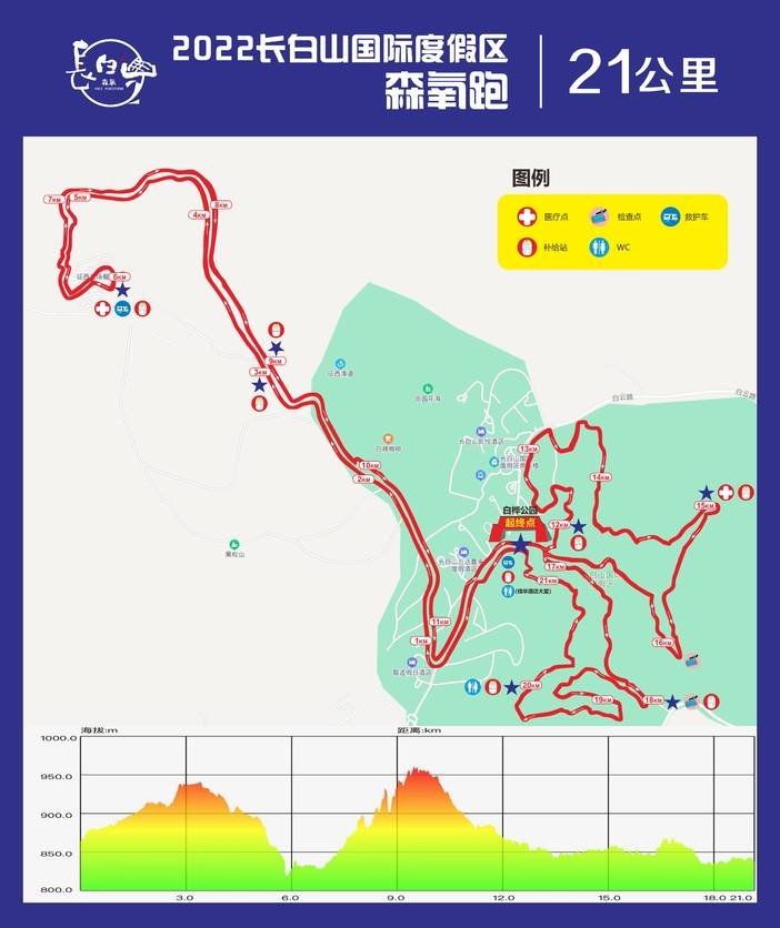 | 补给站 | 3KM | 6KM | 9KM | 12KM | 15KM | 18KM | 20KM | 主补给站(终点) |