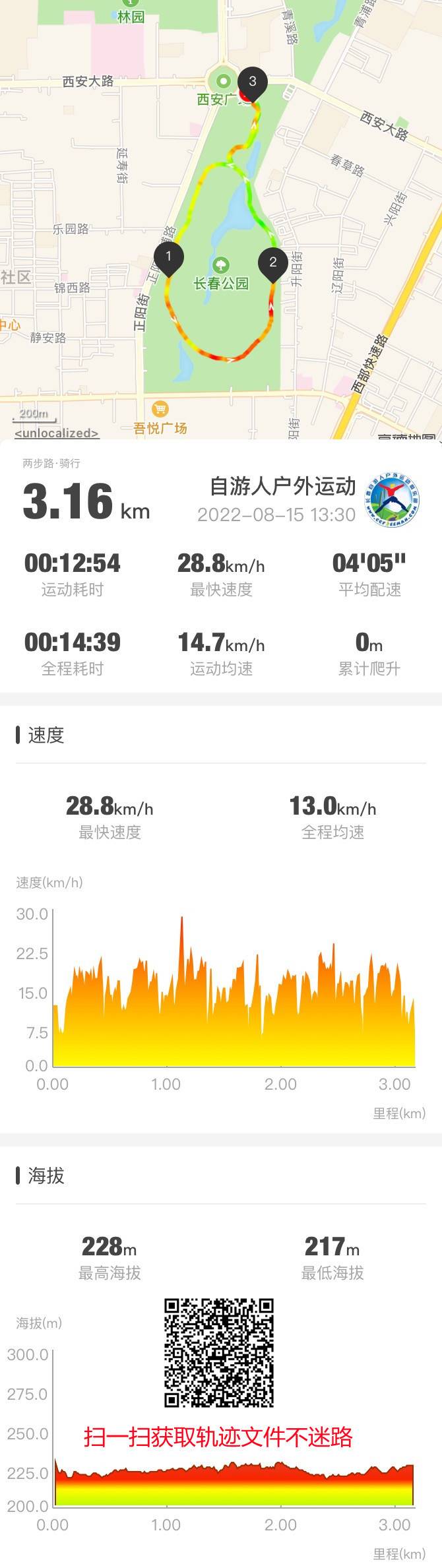 3)20公里路线:从起点出发,绕行公园1圈后返回起点,再出发,绕行1圈,重复7次,全程约22.12公里,单圈3.16公里)