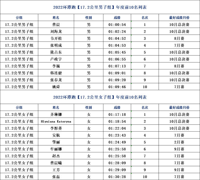 ——2022环潭跑男女前10名榜单——