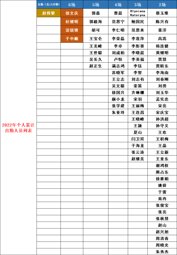 徐文庆,杜继明,沈锐锋,于中顺等4人获2022年度全勤奖,以上人员均获得专属奖杯1座;