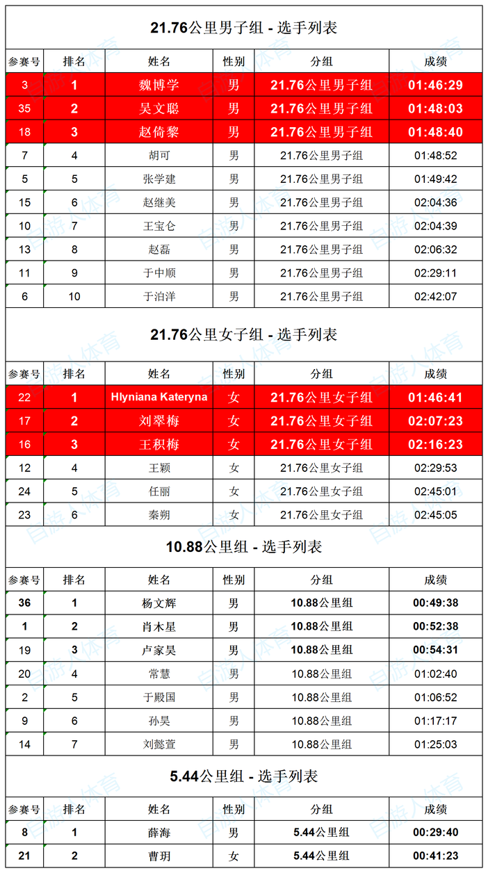 恭喜以上参赛选手完成比赛!