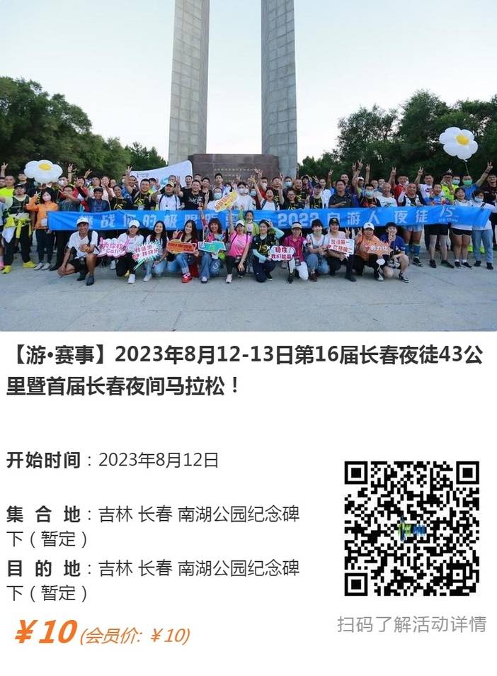 欢迎参加2023长春夜徒43公里系列活动之:自游人“趣跑”,以下是参与办法及活动注意事项,请认真阅读并遵守,谢谢!