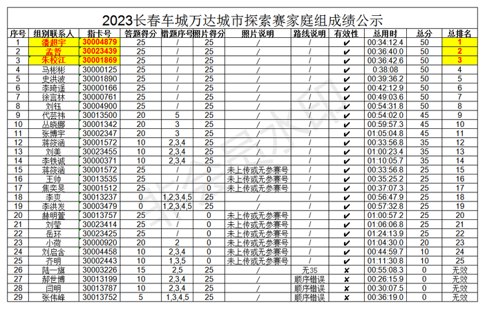 下面就比赛成绩进行公示,公示期为3天,在公示期内如果您对比赛成绩有异议可以联系:13166898041;超过公示期成绩均为最终成绩:以下为参赛及有效成绩名单(中途退赛不在此名单中)