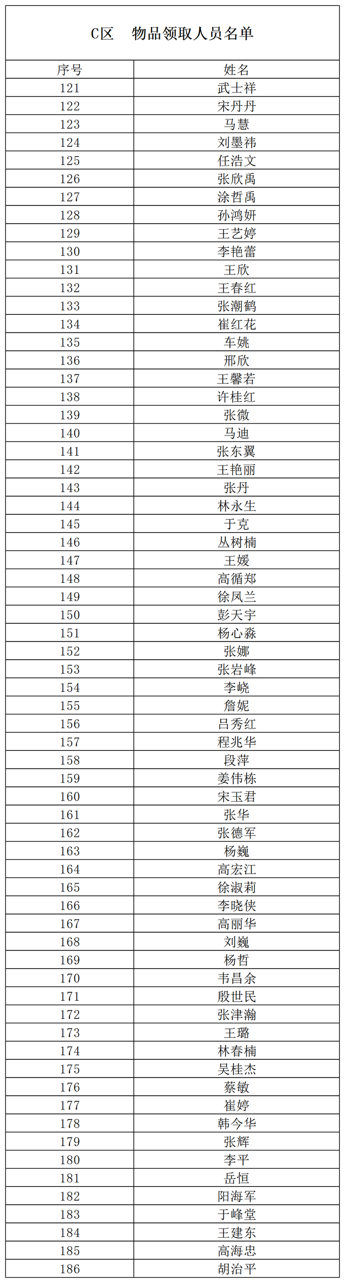 1.参赛物品申领分为A、B、C三个区,以下是分区领取名单,按照自己的名字到对应区申领物品即可;