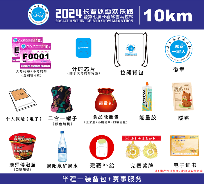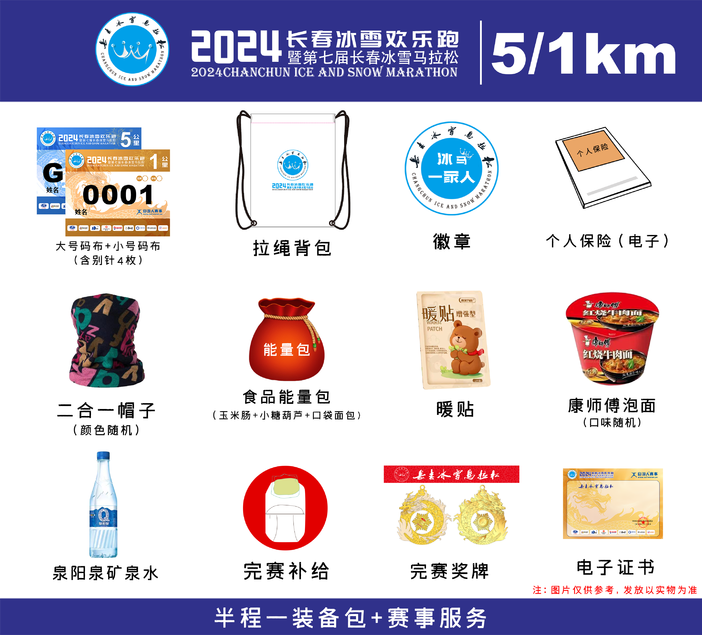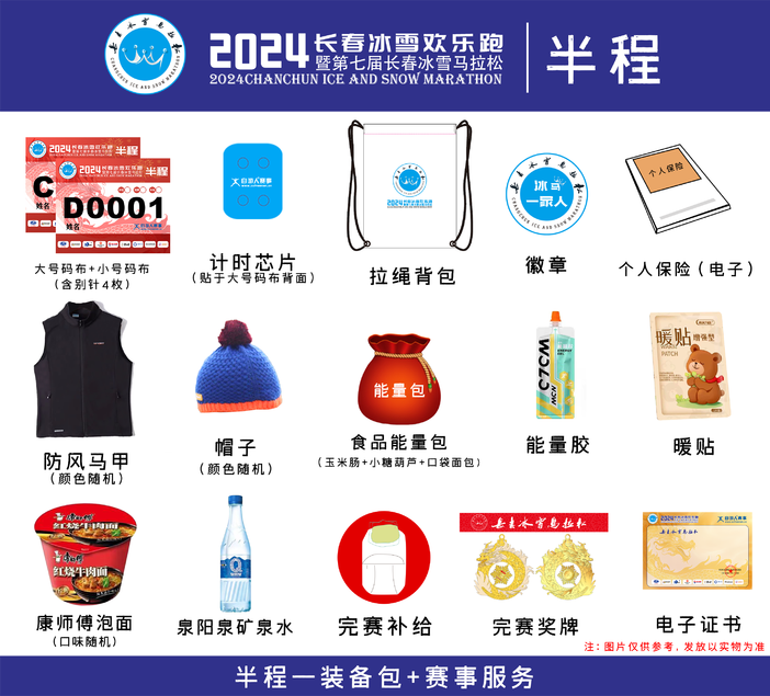 参赛物品内容:保险为电子保单,奖牌,完赛包等完赛后领取。