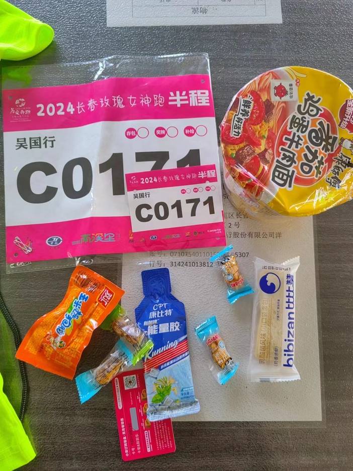 本次比赛参赛包除了秉承玫瑰女神跑的惯例设计,女子服装为粉红色,男子服装为柠檬绿,除此之外,更为选手丰富了比赛能量包,其中包含:酸奶面包,桶面,酥脆小麻花,玉米香肠以及22公里组和10公里组选手能量胶;外加小资订阅赞助提供的盲盒卡一张。