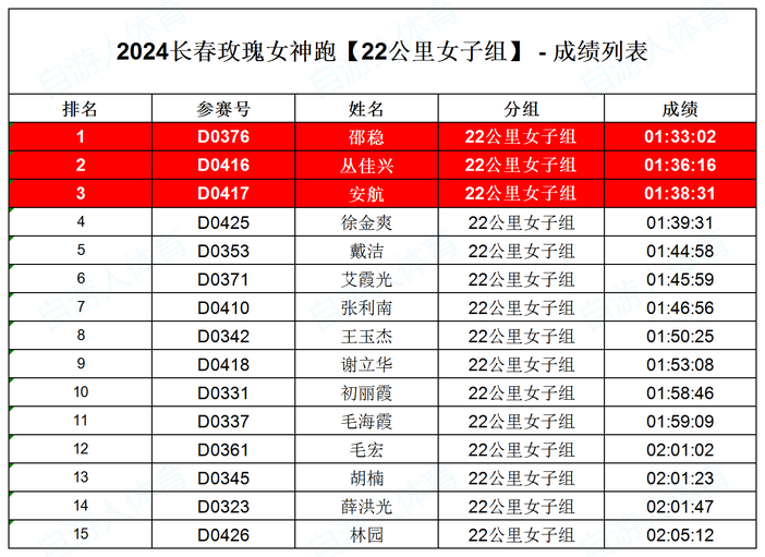 半程女子组亚军由丛佳兴摘得,成绩1小时36分16秒