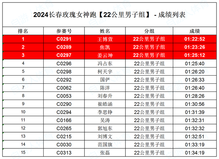半程男子组冠军由来自吉林省体育学院的王博萱摘得;成绩1小时22分52秒