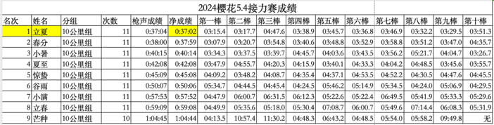 【游·赛讯】2024年5月4日樱花接力赛圆满结束!(成绩公示)