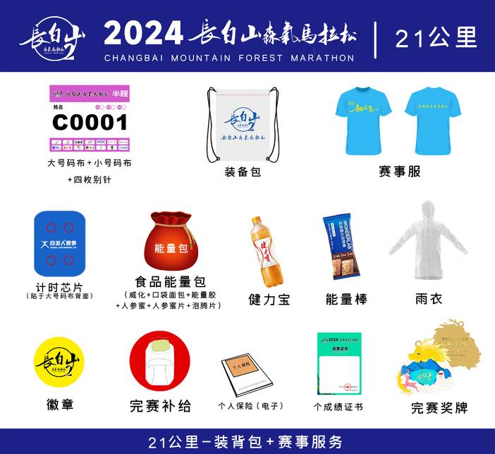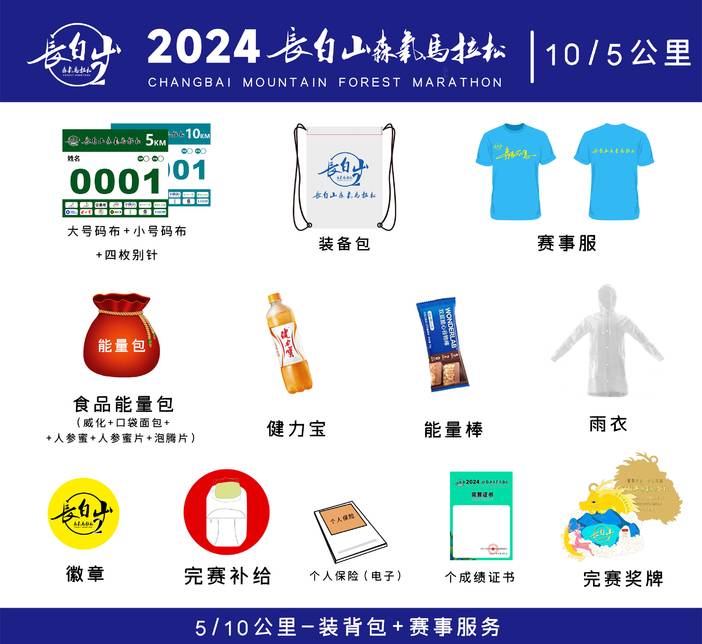 参赛物品内容(保险为电子保单,奖牌,完赛包等完赛后领取)