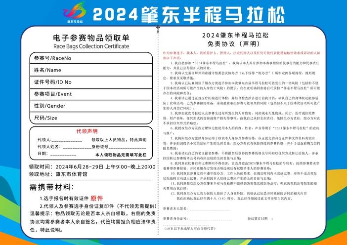 6月28-29日申领参赛包:半程选手领取完参赛包后,请勿折叠您的号码布,本次比赛用的是一次性芯片,芯片就在号码布背面的胶条内,请勿撕毁;
