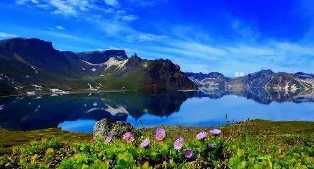 长白山西坡需要爬山才能看到天池,单程900米1442个台阶,慢慢爬半小时也足够了。台阶两边的山坡上三三两两野花绽放,空气清新舒爽天空湛蓝得诱人,回首可以眺望到天边无尽的山脉,夏季的东北紫外线强烈要特别注意防晒。