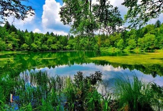 乘游览车到王池景点,下车后通过一条长长的木栈道,步行30分钟便到达。王池是一个椭圆形火山口湖,周围长满了乌拉草和蒲草。平静的湖水倒映着蓝天白云,倒映着绿树森林,十分靓丽。周围的王池花园,每到七八月间,野花怒放,清香袭人,令人陶醉。