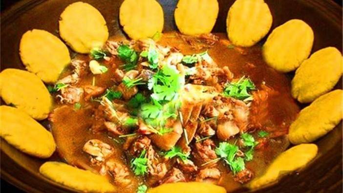 铁锅炖鸡:鸡肉皮色金黄,口感纯正,肉烂脱骨,质地细嫩 香而不腻,滑嫩中裹着咱东北人爱的家乡味~