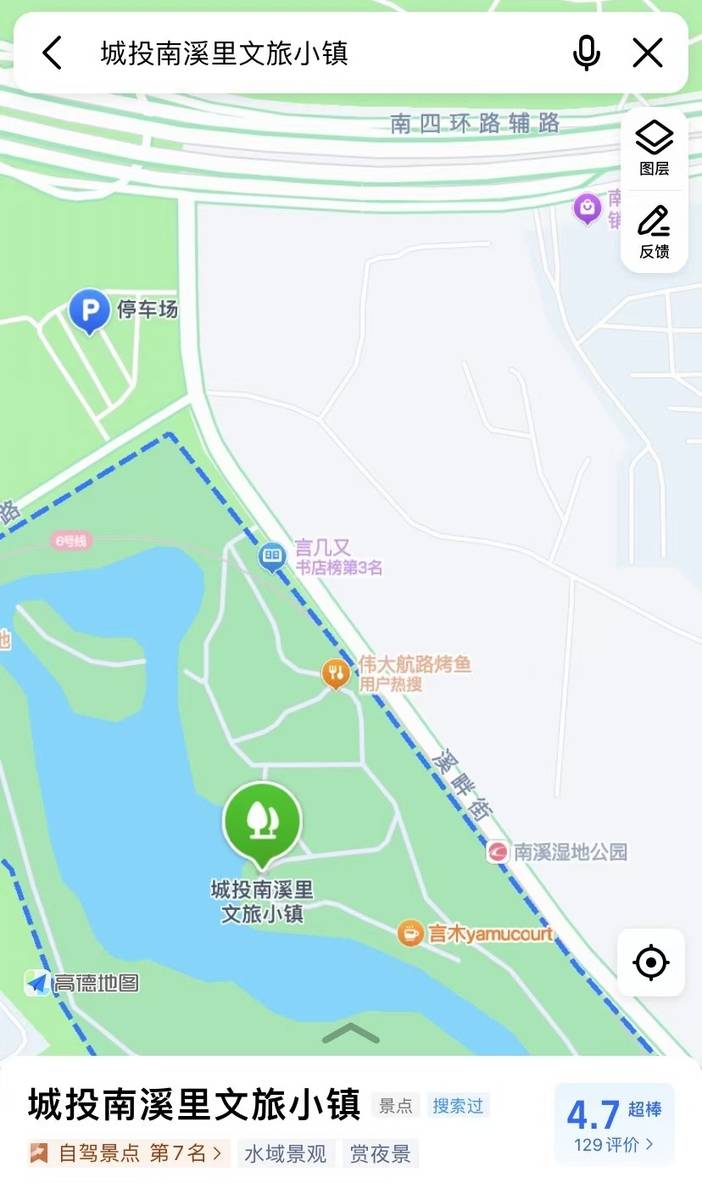 自驾:高德地图导航:城投南溪里文旅小镇;