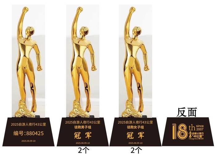 (4)关于成绩与免费奖牌,奖杯的发放:我们的奖杯,免费奖牌只对徒跑43公里组发放,共计12块,获取奖牌需要按以下要求;徒跑43公里男女组跑步成绩前3名;徒跑43公里男女组徒步成绩前3名;奖杯只发放给各组别男女第一名;共计4个!