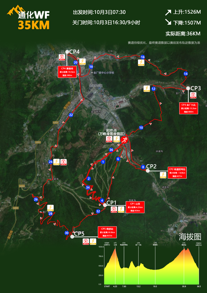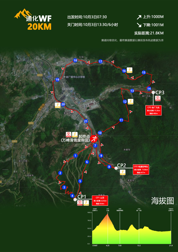 1)此赛段为4.25公里,为万峰雪场雪道,均为砂石路面,从海拔415米,直接攀升至本次赛事最高点海拔954米处;